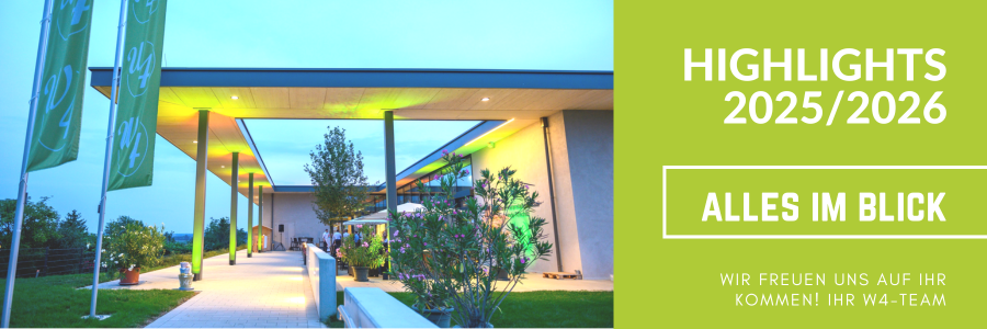 Auf der Festwiese des W4 wird auch heuer wieder neben den Weingärten ein 5-gängiges Menü aufgetischt. Die Weinbegleitung kommt von den Weingütern Norbert Bauer (Jetzelsdorf), Edlinger (Röschitz) und Jordan (Groß-Reipersdorf). Die musikalische Umrahmung übernimmt eine Formation der „zweiviertlerböhmischen“ – junge Blasmusiker aus dem Wald- und Weinviertel mit ihren modernen Blasmusikarrangements. Die bewährte Veranstaltungsreihe ist ein Produkt der Weinstraße Weinviertel und ist nur online buchbar.